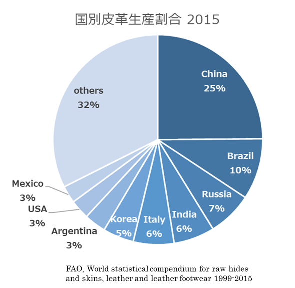 皮革 国別皮革生産割合2015
